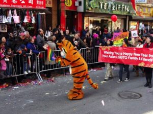 And Downtown Express included a photo of our tiger mascot under the heading, “Gays join Lunar festivities.” WNBC-TV (the local NBC network affiliate) also included a photo in their photo montage from the parade (“Chinatown Rings in the Year of the Tiger”).